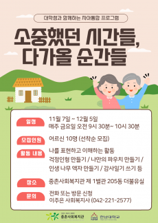 대학생과 함께하는 자아통합 프로그램 "소중했던 시간들, 다가올 순간들"